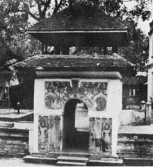 According to Mandarampura Puwata, the Kandyan Kingdom was established after King Vimaladarmasuriya ascendent to the throne defeating Yamasinha Bandara in 1592 AD. The king immediately embraced Buddhism and brought the sacred Tooth Relic to Kandy then known as Senkadagalapura and later came to be known Sri Wardhanapura (meaning the city that increases her beauty) from Delgamuva and built the present Dalada Maligava. The temple was originally built in two storeys by king Vimaladarmasuriya and subsequently erected a three storeyed building to house the tooth relic. The Pattirippuva or the octagon with the moat in front was added later by the last king of Kandy. Along the moat runs a brick wall, the Diyaweli Bemma or the "Waveswell wall". In the main building the first chamber is called the pallemale and upper chamber is called Uda Male or Vedahitina Maligava where the tooth relic resides. Natha DevaleThe oldest of the four directly faces the Dalada Maligava. It has the rare distinction of being identified as the oldest building in the ancient capital dating back to the 14th century and is said to have built by Vikramabahu III. The God Natha to whom a deistic shrine was dedicated is taken to be the power deity who influenced the political affairs at the time. The shrine shows the influence of the Dravidian school of architecture.